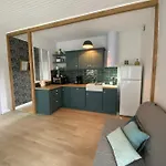 A kitchen includes an electric kettle, a fridge, and kitchenware for you during the stay. Aurillac airport is 35 km away from the 50 m^2 apartment.